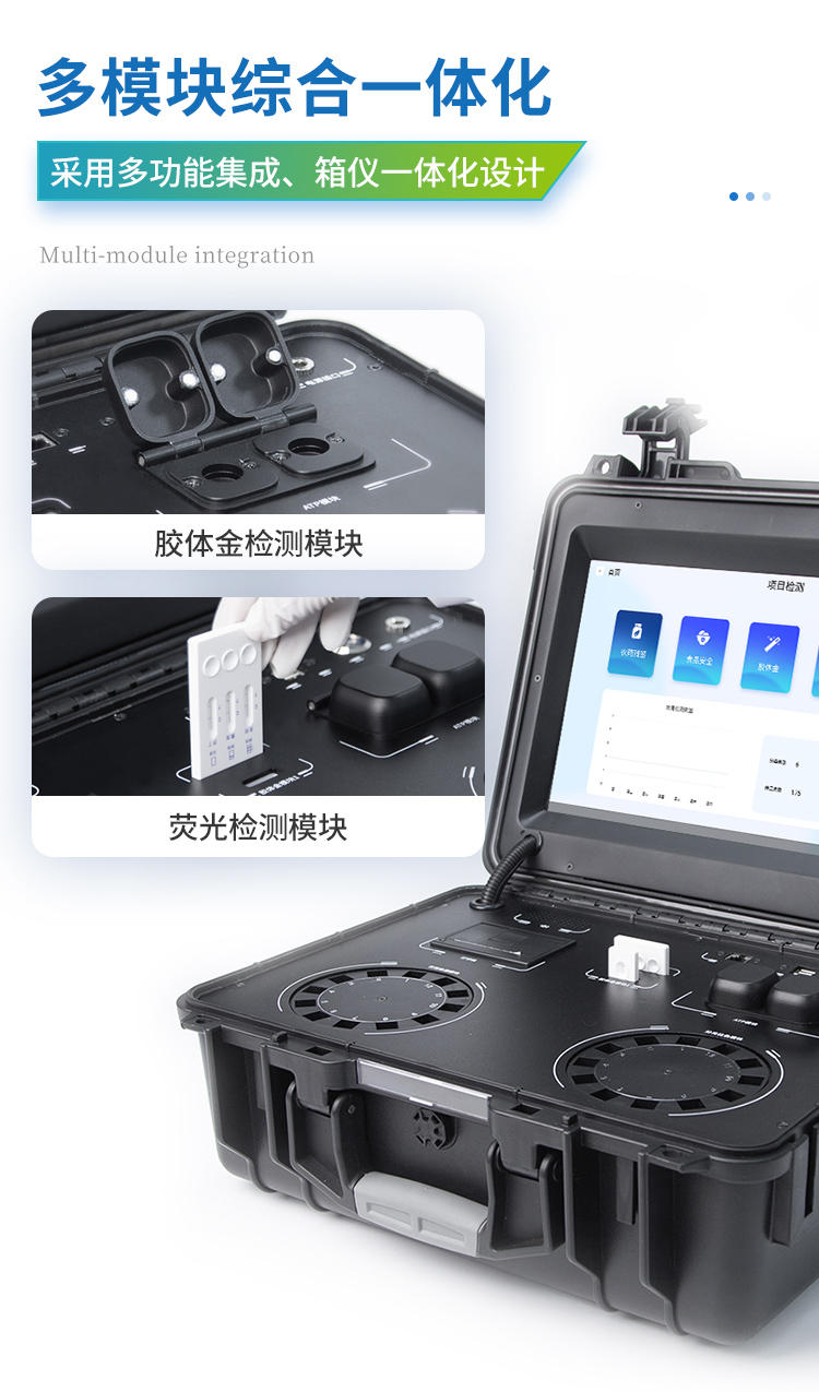 | 儀器采用手提一體化系統(tǒng)檢測(cè)技術(shù),將分光光度模塊、膠體金檢測(cè)模塊、新型農(nóng)殘檢測(cè)模塊、數(shù)字化管理模塊、無線通訊模塊高度集成于一體,支持檢測(cè)200種食品安全檢測(cè)項(xiàng)目,同時(shí)預(yù)留升級(jí)檢測(cè)方法。 | 儀器檢測(cè)模塊標(biāo)準(zhǔn)化、智能化,檢測(cè)項(xiàng)目可隨意自由組合。檢測(cè)箱體內(nèi)置多個(gè)標(biāo)準(zhǔn)檢測(cè)單元,檢測(cè)模塊可以調(diào)整配置。 | 顯示屏幕:儀器采用10.1英寸豎向液晶觸摸屏顯,搭配運(yùn)行安卓智能操作系統(tǒng),主控芯片采用ARM Cortex-A7,RK3288/4核處理器,主頻1.88Ghz,操作方便,性能更強(qiáng)。 | 檢測(cè)通道:≥12通道;采用精密旋轉(zhuǎn)比色池設(shè)計(jì),使用同芯片同光源校準(zhǔn)精度,解決不同光源之間的誤差值,更加準(zhǔn)確**。(1-12通道間誤差0.1%,**號(hào):ZL202022821055.2) | 儀器光源:高精度進(jìn)口四波長冷光源,每個(gè)通道均配置 410、520、590、630nm 波長光源,標(biāo)配**的光路切換裝置,**光路切換功能可實(shí)現(xiàn)64波長,并且所有檢測(cè)項(xiàng)目可實(shí)現(xiàn)所有通道同時(shí)檢測(cè)。 | 設(shè)備可一鍵校準(zhǔn),自動(dòng)保存校準(zhǔn)數(shù)據(jù),自動(dòng)對(duì)比校驗(yàn),得到精準(zhǔn)光源,采用Android SP存儲(chǔ)數(shù)據(jù),光源數(shù)據(jù)永不丟失,方便每一次使用。 | 通訊接口:配備無線通信模塊、4G(APN)通訊模塊、藍(lán)牙傳輸,同時(shí)具有雙USB接口以及RJ45網(wǎng)線接口,可以多方式實(shí)現(xiàn)數(shù)據(jù)保存及數(shù)據(jù)傳輸。 | 存儲(chǔ)方式:支持U盤存儲(chǔ),標(biāo)準(zhǔn)USB接口,免驅(qū)動(dòng)安裝。檢測(cè)結(jié)果存儲(chǔ)容量20萬條以上,可生成Excel表格進(jìn)行拷貝,并具有登錄保護(hù)功能。 | 智能化操作系統(tǒng):: ★操作系統(tǒng):儀器可在同一檢測(cè)界面自動(dòng)對(duì)應(yīng)相關(guān)檢測(cè)通道,一次性選擇1-12個(gè)樣品名稱,無需退出界面,節(jié)省操作時(shí)間。并可以對(duì)每個(gè)通道屬性和樣品信息單獨(dú)進(jìn)行編輯,例如送檢單位、人員,檢測(cè)人員等,打印時(shí)勾選打印顯示。 | ★數(shù)據(jù)集成系統(tǒng):設(shè)備首頁自動(dòng)匯總分析檢測(cè)數(shù)據(jù),包含:周檢測(cè)數(shù)據(jù)、月檢測(cè)數(shù)據(jù),全部檢測(cè)總數(shù)量,均包含檢測(cè)總數(shù),合格數(shù),不合格數(shù),以及相關(guān)柱形分析圖,各項(xiàng)檢測(cè)數(shù)據(jù)一目了然,無需電腦查詢,更加快捷直觀。 | ★數(shù)據(jù)庫系統(tǒng):十幾項(xiàng)數(shù)據(jù)庫分類管理儀器:包含項(xiàng)目類型、項(xiàng)目數(shù)據(jù)、檢測(cè)數(shù)據(jù)、歷史記錄、國標(biāo)信息、曲線信息、采樣信息、檢測(cè)信息、受檢信息、復(fù)核信息、圖表信息、光源校準(zhǔn)信息、打印樣式信息、樣品庫信息等等,數(shù)據(jù)庫之間互相協(xié)調(diào)聯(lián)動(dòng)保證數(shù)據(jù)的真實(shí)完整性。同時(shí)產(chǎn)品數(shù)據(jù)庫以及歷史檢測(cè)記錄支持一鍵檢索功能。 | ★限量規(guī)判系統(tǒng):具有限量查詢、添加物質(zhì)合規(guī)判定系統(tǒng)。檢測(cè)出結(jié)果后,系統(tǒng)自動(dòng)調(diào)用系統(tǒng)數(shù)據(jù)庫中相關(guān)國標(biāo)進(jìn)行比對(duì)判定,客觀顯示判定結(jié)果是否合格 | ★項(xiàng)目預(yù)設(shè)系統(tǒng):儀器具有任務(wù)預(yù)設(shè)模塊,一鍵提前預(yù)設(shè),給出方便快捷的新檢測(cè)方案,每一個(gè)任務(wù)分別可以設(shè)置不同的樣品、批次、編號(hào)、來源、備注、抽樣信息、檢測(cè)信息、受檢信息、復(fù)核信息等更多信息。樣品送檢時(shí)一鍵調(diào)取保存信息,并可多次調(diào)取,大大提高檢測(cè)效率。 | ★數(shù)據(jù)監(jiān)管系統(tǒng):同步對(duì)接監(jiān)管平臺(tái),數(shù)據(jù)可局域網(wǎng)和互聯(lián)網(wǎng)數(shù)據(jù)上傳,檢測(cè)結(jié)果可選擇直接傳至食品安全監(jiān)管平臺(tái)。進(jìn)行區(qū)域食品安全監(jiān)管及大數(shù)據(jù)分析處理與數(shù)據(jù)統(tǒng)計(jì),檢測(cè)區(qū)域食品安全長短期動(dòng)態(tài),達(dá)到食品安全問題預(yù)估、預(yù)警。 | ★打印系統(tǒng):內(nèi)置全新打印機(jī),新創(chuàng)自定義打印方式,可按需靈活勾選控制:產(chǎn)品合格證(國家農(nóng)業(yè)部標(biāo)準(zhǔn)要求),二維碼,抽樣信息、檢測(cè)信息,受檢信息、復(fù)核信息、抽樣日期、檢測(cè)日期等信息的打印。 | 供電模式:儀器交直流兩用,直流12V供電,可連接車載電源,可配6ah大容量充電鋰電池,電量可實(shí)時(shí)顯示,方便戶外流動(dòng)測(cè)試。 | 膠體金檢測(cè)模塊:采用雙通道CMOS成像處理技術(shù)及膠體金免疫層析技術(shù),可同時(shí)讀取雙膠體金卡數(shù)據(jù),自動(dòng)采集、處理分析,將檢測(cè)結(jié)果顯示,并可根據(jù)參考限值自動(dòng)判斷檢測(cè)結(jié)果,可檢測(cè)常見的獸藥殘留、生物毒素、抗生素、違禁添加物等。 | ★探測(cè)技術(shù):CMOS成像探測(cè); | ★檢測(cè)通道:1個(gè)通道; | ★檢測(cè)方式:消線法和比色法; | ★顯示模式:陰性或陽性; | 曲線形式:軌道式掃描方式,顯示金標(biāo)卡圖像,實(shí)時(shí)生成、識(shí