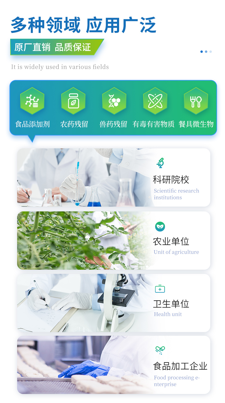 | 儀器采用臺式一體化系統(tǒng)檢測技術(shù),將分光光度模塊、新型農(nóng)殘檢測模塊、數(shù)字化管理模塊、無線通訊模塊高度集成于一體,支持檢測200種食品安全檢測項目,同時預留升級檢測方法。 | 儀器檢測模塊標準化、智能化,可隨意自由組合。檢測箱體內(nèi)置多個標準檢測單元,檢測模塊可以調(diào)整配置。 | 儀器采用全新安卓智能系統(tǒng),主控芯片采用 ARM Cortex-A7,RK3288/4核處理器,10.1寸高清液晶觸摸豎屏,更加**的UI交互界面,運轉(zhuǎn)快捷;儀器配備無線通信模塊: 4G(APN)通訊模塊、Wifi模塊,藍牙傳輸,同時具有雙USB接口以及RJ45接口能以多種方式實現(xiàn)數(shù)據(jù)保存和數(shù)據(jù)傳輸功能。 | 創(chuàng)新檢測模式: | ★檢測通道:≥12通道;采用精密旋轉(zhuǎn)比色池設計,使用同芯片同光源校準精度,解決不同光源之間的誤差值。1-12通道間誤差0.1%。(**號:ZL202022821055.2) | ★儀器具有自動識別比色皿檢測功能,即:將樣品比色皿放入儀器后,點擊樣品檢測,儀器自動識別比色皿進行通道檢測。 | 進口高精光源: | 高精度進口四波長冷光源,通道配置 410、520、590、630nm 波長光源,一個光源芯片驅(qū)動一個光源,誤差極小,每臺設備單獨**校準光源,**比對,同時參照四種不同波段光源全方位覆蓋市面上99%的農(nóng)殘食品項目檢測。 | 智能化操作系統(tǒng): | 便捷操作系統(tǒng):設備檢測時可在同一檢測界面自動對應相關(guān)檢測通道一次性選擇1-12個樣品名稱,無須退出界面,節(jié)省操作時間。 | 數(shù)據(jù)集成系統(tǒng):設備首頁自動統(tǒng)計檢測數(shù)據(jù)包含:周檢測數(shù)據(jù)、月檢測數(shù)據(jù),全部檢測總數(shù)量,均包含檢測總數(shù),合格數(shù),不合格數(shù),以及相關(guān)柱形分析圖,對各項檢測數(shù)據(jù)清晰掌握,無需電腦查詢,更加快捷直觀。 | 項目預設系統(tǒng):支持添加單個及多個相同或不相同的任務預設,一鍵快速調(diào)取,每一個任務分別可以設置不同的樣品、批次、編號、來源、備注、抽樣信息、檢測信息、受檢信息、復核信息等更多信息。無縫鏈接平臺和APP實時查看下發(fā)任務。 | 數(shù)據(jù)監(jiān)管系統(tǒng):同步對接監(jiān)管平臺,數(shù)據(jù)可局域網(wǎng)和互聯(lián)網(wǎng)數(shù)據(jù)上傳,檢測結(jié)果可選擇直接傳至食品安全監(jiān)管平臺。集成OSS輸出存儲服務、區(qū)分設備定向管理應用,進行區(qū)域食品安全監(jiān)管及大數(shù)據(jù)分析處理與數(shù)據(jù)統(tǒng)計,檢測區(qū)域食品安全長短期動態(tài),達到食品安全問題預估、預警。 | 自定義打印系統(tǒng):內(nèi)置全新打印系統(tǒng),新創(chuàng)自定義打印方式,可按需靈活設置開啟或關(guān)閉:產(chǎn)品合格證(國家農(nóng)業(yè)部標準要求),二維碼,抽樣信息、檢測信息,受檢信息、復核信息、抽樣日期、檢測日期等信息的打印。 | 系統(tǒng)遠程更新功能:可定向分客戶分儀器更新系統(tǒng),按照不同客戶后期實際需求添加項目,無需機器返廠,即可遠程實時升級全新系統(tǒng),節(jié)省時間成本及避免運輸造成設備損壞。 | 儀器主機采用一體化防水、抗壓、防撞擊、防腐蝕箱體設計,同時配備交直流供電,可連接車載電源,可選配大容量充電鋰電池,滿足現(xiàn)場野外檢測需求。 | 安全證書,放心保障:儀器具有中國計量科學研究院校準證書,**認證。 |