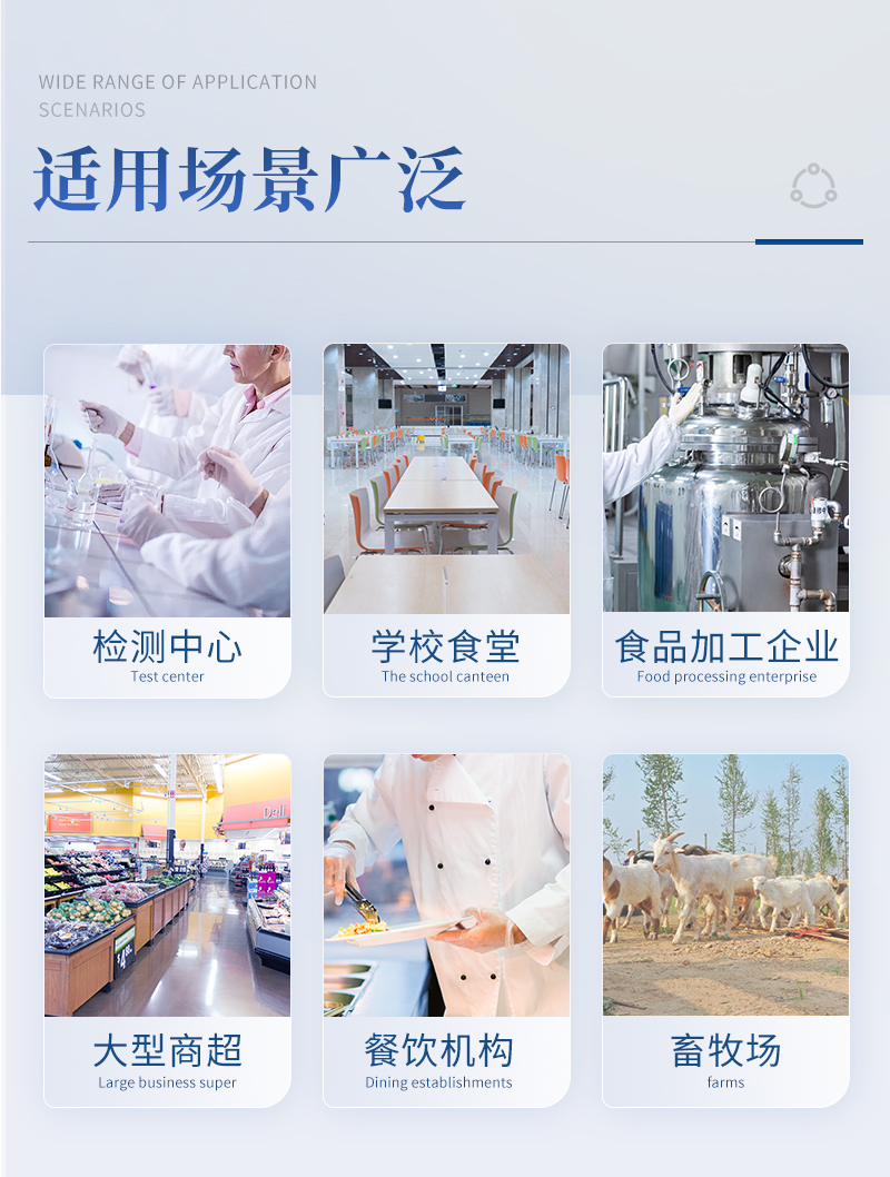該病害肉檢測(cè)儀為集成化食品安全快速檢測(cè)分析設(shè)備,目前已于餐飲檢測(cè)、食藥監(jiān)局、衛(wèi)生部門(mén)、肉制品食品深加工企業(yè)、商場(chǎng)超市、質(zhì)量監(jiān)督檢驗(yàn)、工商管理、各大食品安全監(jiān)測(cè)系統(tǒng)等單位廣泛使用。