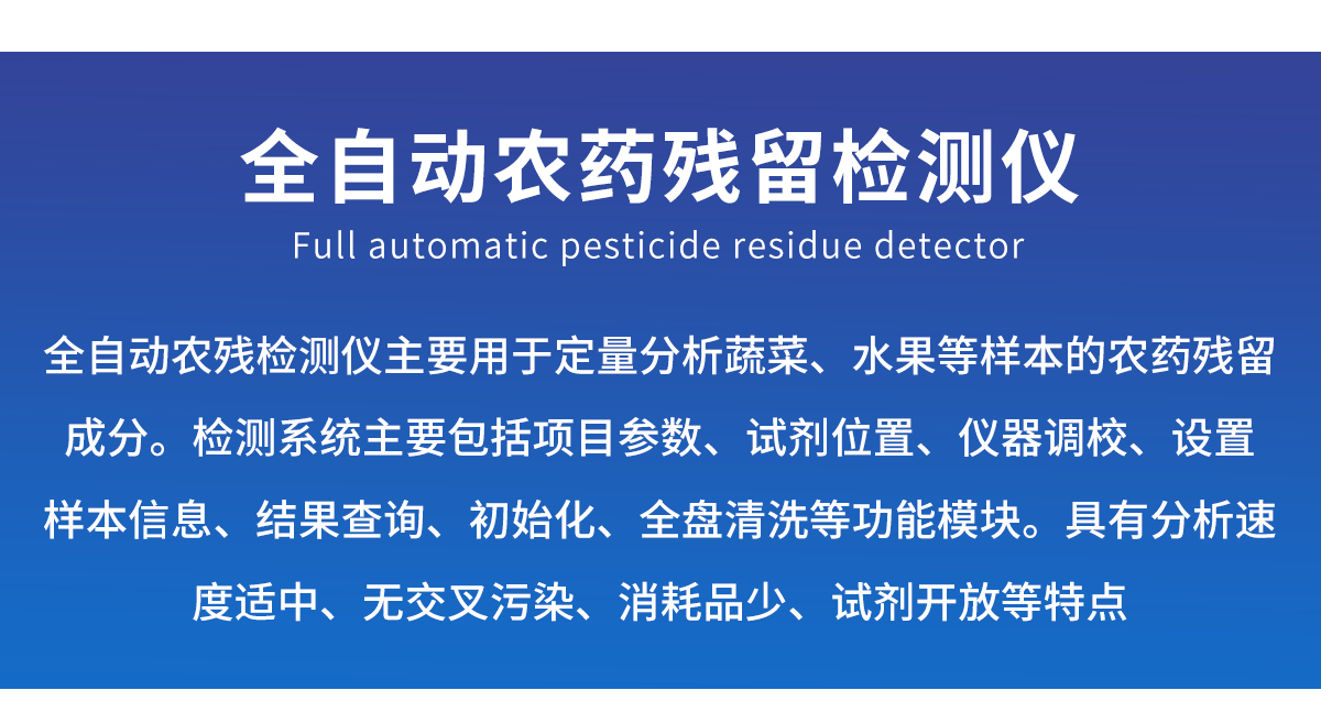 產品簡介: 天研全自動農藥殘留檢測儀YT-NY2000,檢測標準:依據國家標準方法(GB/T5009.199-2003)以及世界衛(wèi)生組織WHO、世界糧農組織FAO殘留農藥檢測標準、世界環(huán)境保護局EPA參照攝入量等要求來設計。采用酶抑制率比色法對水果、蔬菜等農林產品中有機磷和氨基甲酸酯類農藥含量進行快速準確的檢測。 廣