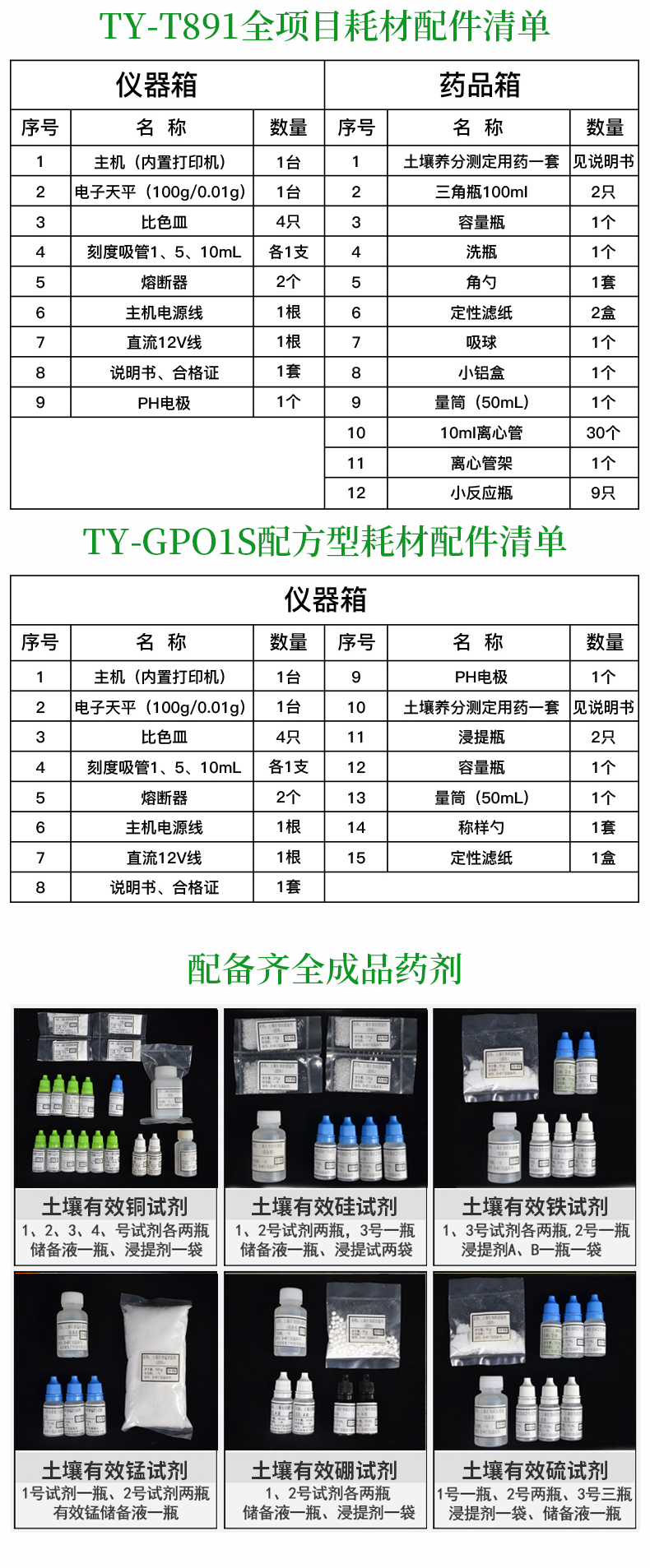 | 全項(xiàng)目土壤肥料養(yǎng)分速測(cè)儀功能全:測(cè)試項(xiàng)目國(guó)內(nèi)外*全(各類藥劑均可選購(gòu))。 | 配套齊全:該儀器集藥、器、儀為一體,攜帶方便,相當(dāng)于一個(gè)小型實(shí)驗(yàn)室。適于農(nóng)業(yè)服務(wù)部門或農(nóng)資經(jīng)銷商、肥料廠商測(cè)土施肥和鑒別肥料真假。 | 操作簡(jiǎn)便、速度快捷,成品藥劑開瓶即用,無須配置。 |
