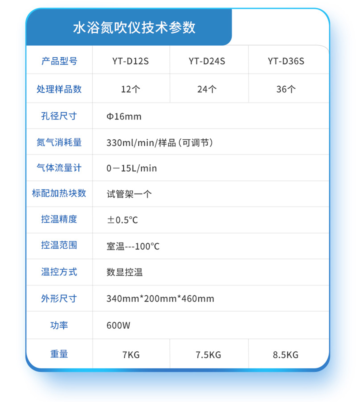 | YT-D12(12孔) | 12個(gè) | Ф16mm | 150W | 0-15L/min | 試管架一個(gè) | ±0.5℃ | 室溫+5℃~150℃ | 數(shù)顯控溫 | 280mm*240mm*500mm | 7KG |