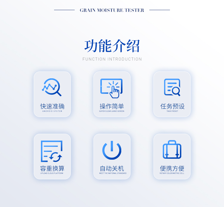 產(chǎn)品介紹: TY-L80型糧食水分測(cè)定儀是老型糧食水分測(cè)定儀的升級(jí)產(chǎn)品、在原來(lái)的基礎(chǔ)上增加了自動(dòng)累加測(cè)量次數(shù),計(jì)算平均值功能和容量自動(dòng)換算顯示功能,其性能更穩(wěn)定可靠,擁有外觀設(shè)計(jì)國(guó)家**,外形新穎美觀,完**與國(guó)外同類產(chǎn)品媲美,是水分測(cè)量?jī)x器理想的升級(jí)換代產(chǎn)品。 容重?fù)Q算:獨(dú)特的專