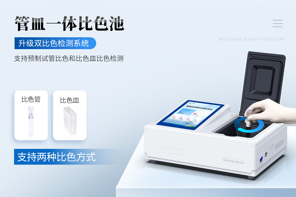 提取一定量水體樣品,經(jīng)過前處理后根據(jù)不同檢測項目按照試劑說明書滴入檢測試劑,檢測試劑會與水體中的待測物質(zhì)發(fā)生反應(yīng),反應(yīng)液呈現(xiàn)特定的顏色。