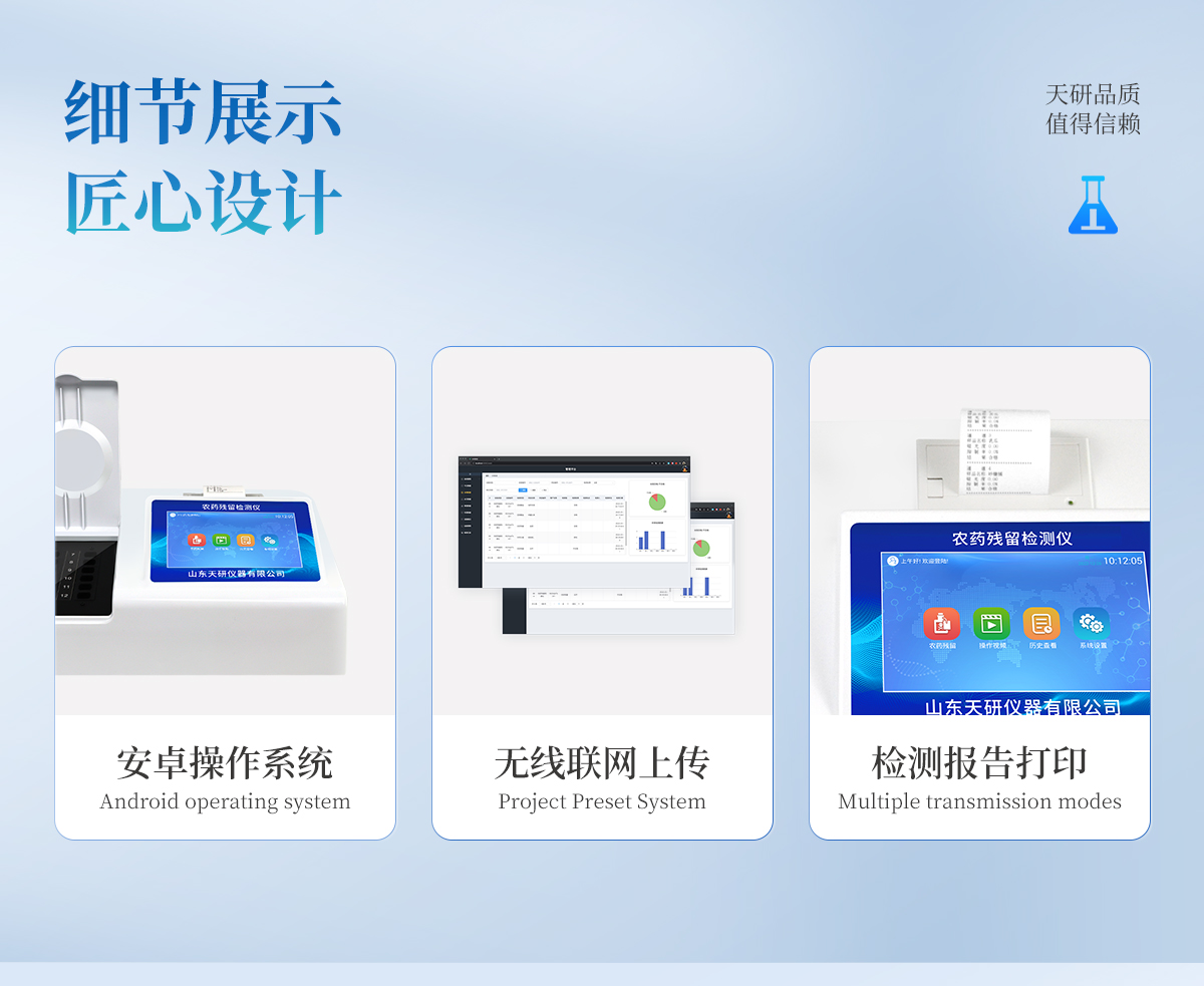檢測標(biāo)準(zhǔn):依據(jù)國家標(biāo)準(zhǔn)方法(GB/T5009.199-2003)以及世界衛(wèi)生組織WHO、世界糧農(nóng)組織FAO殘留農(nóng)藥檢測標(biāo)準(zhǔn)、世界環(huán)境保護(hù)局EPA參照攝入量等要求來設(shè)計。采用酶抑制率比色法對水果、蔬菜等農(nóng)林產(chǎn)品中有機磷和氨基甲酸酯類農(nóng)藥含量進(jìn)行快速準(zhǔn)確的檢測,乙酰膽堿酯酶和丁酰膽堿酯酶試劑均可以使用,符合國家標(biāo)準(zhǔn)和農(nóng)業(yè)部標(biāo)準(zhǔn)的要求。