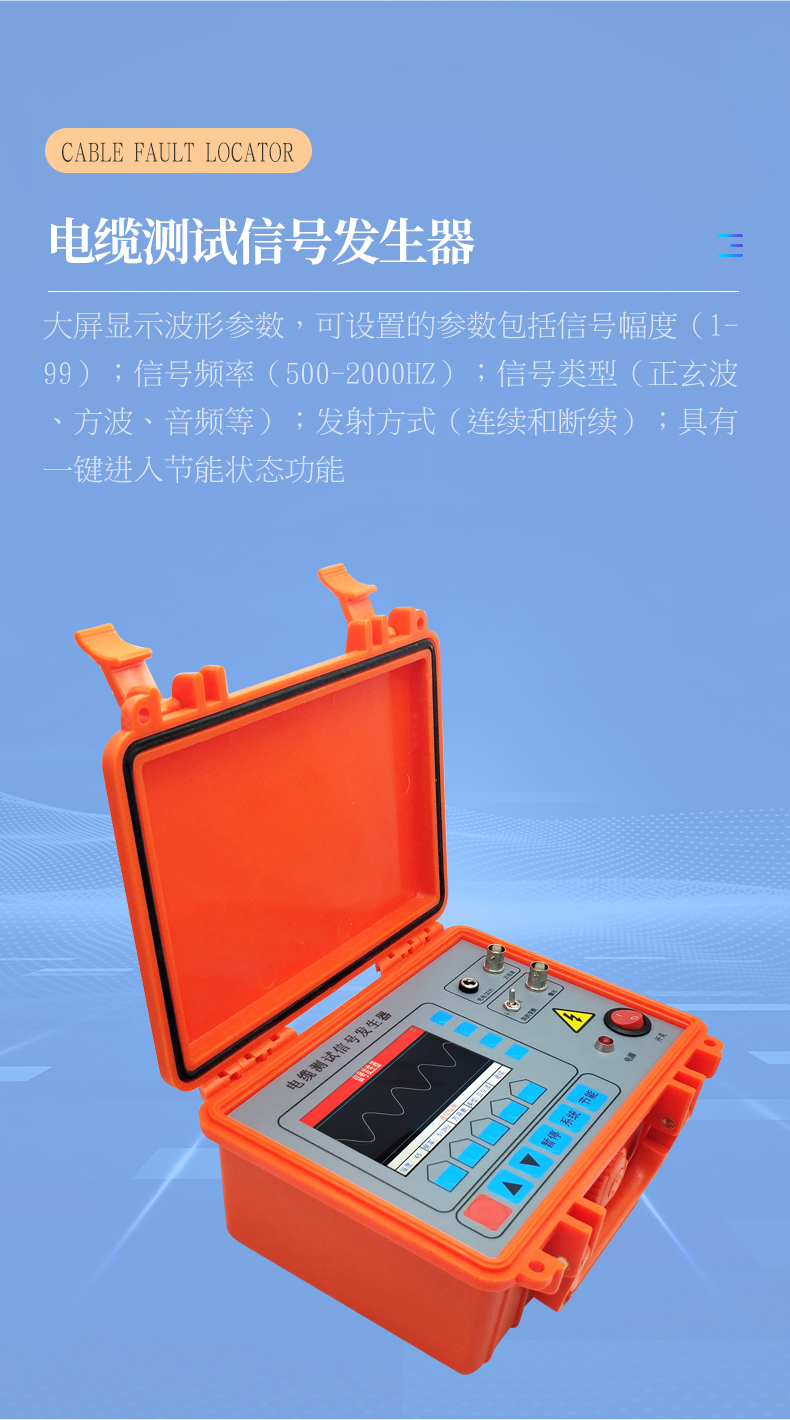 本測試儀主要用于10KV等級(可拓展至50kv)以內(nèi)的高低壓地埋電力電纜的斷線、短路、對地漏電故障( 對地絕緣電阻在0.5兆歐以內(nèi))的定位及地埋電纜深度、路徑走向的探測