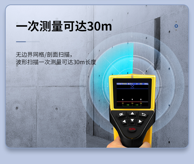 | 顯示器波形掃描方式直觀,對密集分布的鋼筋檢測、分析非常直觀。 | 混凝土厚度檢測模式直觀、準(zhǔn)確顯示保護(hù)層厚度,并可顯示已存鋼筋間距。 | 可檢測兩鋼筋間位置,指示燈提示鋼筋位置。 | 無邊界網(wǎng)格/剖面掃描,波形掃描一次測量可達(dá)30m長度。 | 具有存儲、查看、刪除等功能,可存12000個(gè)構(gòu)件或者20萬測點(diǎn)。 | 具有語音提示測試數(shù)據(jù)報(bào)讀功能。 | USB/藍(lán)牙數(shù)據(jù)傳輸,可將存儲數(shù)據(jù)通過USB/藍(lán)牙上傳到計(jì)算機(jī)。 | PC機(jī)專業(yè)數(shù)據(jù)分析軟件,數(shù)據(jù)處理及報(bào)告生成簡便(可3D成像)。 | 外置大容量18650鋰電池,方便更換及運(yùn)輸,低功耗電路設(shè)計(jì),電池充滿后可工作約30小時(shí)。 | 一體式設(shè)計(jì),體積小巧,重量輕,方便攜帶,顯示器界面中英文切換。 | 儀器尺寸:220*96*108mm | 儀器重量:0.65Kg |