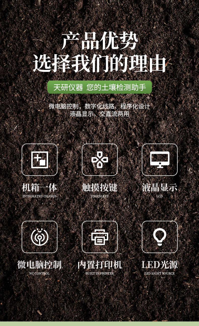 | 全國(guó)《機(jī)箱/藥劑一體式鋁合金機(jī)箱》設(shè)計(jì),便于攜帶、堅(jiān)固耐用,配套成品藥劑。 | 微電腦控制,數(shù)字化線路、程序化設(shè)計(jì),液晶顯示,交直流兩用,測(cè)試數(shù)據(jù)可存儲(chǔ)查詢,可野外流動(dòng)測(cè)試,**程度降低操作者的失誤和勞動(dòng)強(qiáng)度。 | 分辨率:0.001,觸摸式按鍵,內(nèi)置新一代熱敏打印機(jī),可打印測(cè)試結(jié)果。 | 肥料養(yǎng)分專(zhuān)用快速檢測(cè)儀可檢測(cè)化肥、有機(jī)肥中的速效氮、速效磷、有效鉀、全氮、全磷、全鉀、有機(jī)質(zhì)含量等。 | 采用高亮度 LED 燈作為光源, 硅半導(dǎo)體作為信號(hào)接收系統(tǒng), 壽命長(zhǎng)達(dá)10萬(wàn)小時(shí)級(jí)別。光源穩(wěn)定,一致性好。 | 比色槽部分采用單通道、雙光路設(shè)計(jì),無(wú)機(jī)械位移及磨損,光路測(cè)試定位**,保證測(cè)定結(jié)果精度。 | 采用自主發(fā)明分析方法,保證檢測(cè)結(jié)果絕對(duì)達(dá)到國(guó)標(biāo)要求。 | 肥料打印結(jié)果為百分含量,測(cè)試誤差小于1%。 |
