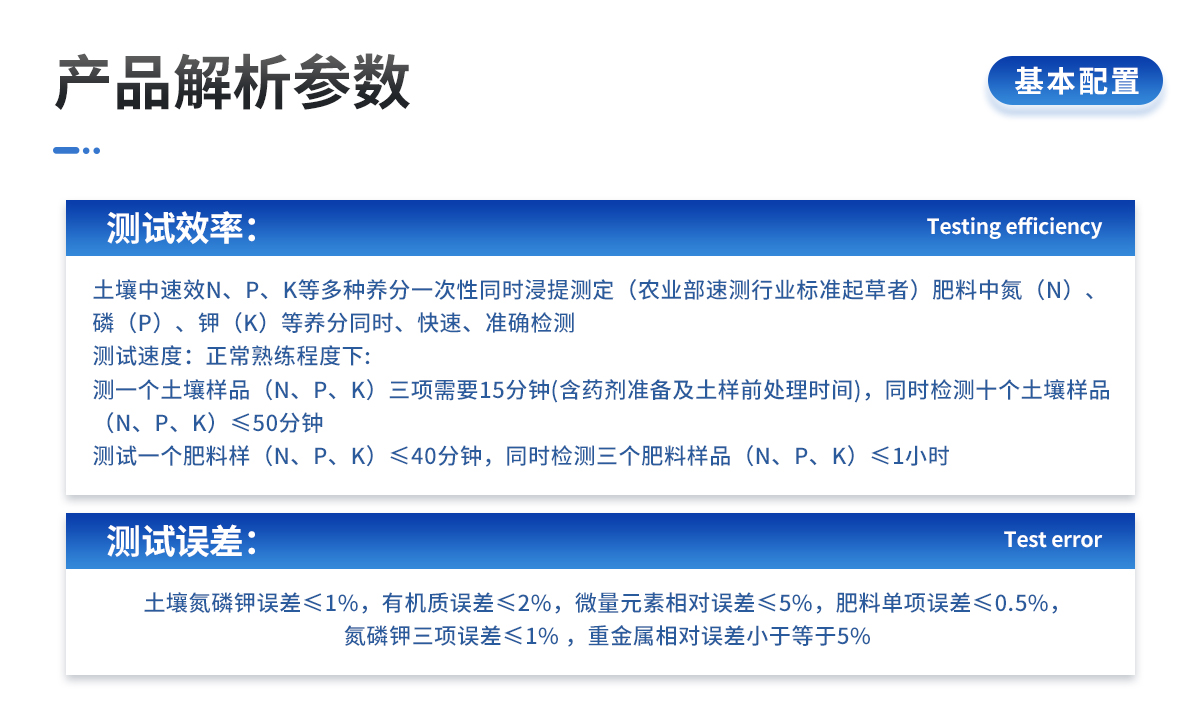 | 土壤氮磷鉀誤差≤1%,有機質(zhì)誤差≤2%,微量元素相對誤差≤5%;肥料單項誤差≤0.5%,氮磷鉀三項誤差≤1%。 | 重金屬相對誤差小于等于5%。 |
