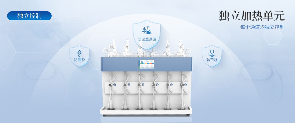 各級(jí)實(shí)驗(yàn)室的前處理實(shí)驗(yàn)過程中,蒸餾實(shí)驗(yàn)是非常常見且又非常重要的一項(xiàng)前處理步驟。但傳統(tǒng)的蒸餾裝置由于加熱,冷凝,接收等裝置部分結(jié)構(gòu)獨(dú)立,操作繁瑣,效率較低,故障率高,蒸餾過程中加熱溫度不易控制,終點(diǎn)無法自動(dòng)判斷停止,餾出液易倒吸,相應(yīng)帶來平行性差,回收率低等直接影響實(shí)驗(yàn)結(jié)果的現(xiàn)象等各種弊端。