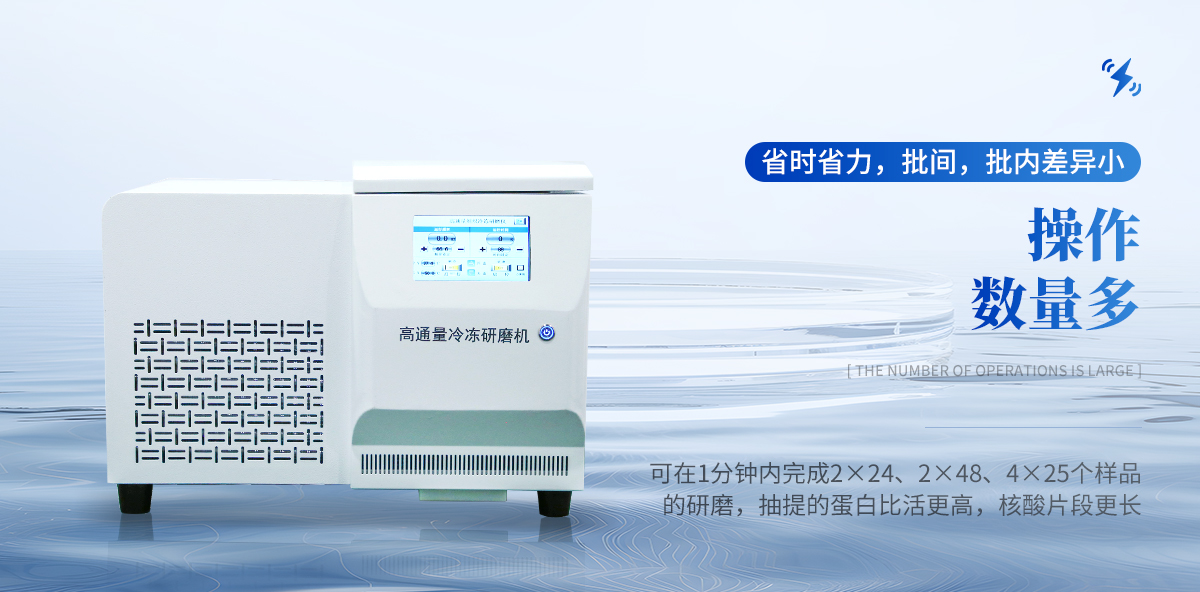 產(chǎn)品介紹:高通量冷凍組織研磨機(jī)采用了特殊的垂直 上下震動模 式,通過研磨珠(氧化鋯、鋼珠、玻璃珠、陶瓷珠)的高頻往復(fù)振動、撞擊、剪切??焖俚膶?shí)現(xiàn)目的。使研磨的樣品具有更加充分、更均勻、樣品重復(fù)性更好、樣品之間沒有交叉污染。產(chǎn)品特點(diǎn):1、操作數(shù)量多: **快速的工作可以在1分鐘內(nèi)完成2×24、2×48、4×25個(gè)樣品