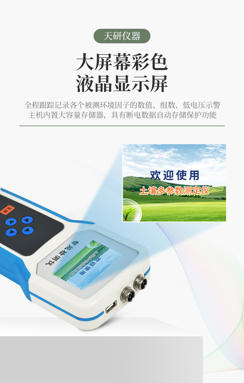 | 儀器可加配4G聯(lián)網(wǎng)功和能數(shù)據(jù)管理平臺,將本機存儲的被測點環(huán)境因子測量歷史數(shù)據(jù)無線上傳到智慧云農(nóng)業(yè)平臺,方便用戶進行數(shù)據(jù)管理和長期分析。 | 本機體積小巧、美觀,操作簡單方便,性能可靠,野外攜帶極為方便。主機連接傳感器后可以手動存儲記錄也可通過主機任意設(shè)置采樣間隔,自動存儲記錄數(shù)據(jù)。 | 大屏幕彩色液晶顯示屏,全程跟蹤記錄各個被測環(huán)境因子的數(shù)值、組數(shù)、低電壓示警,主機內(nèi)置大容量存儲器,可儲存三十萬條數(shù)據(jù),具有斷電數(shù)據(jù)自動存儲保護功能。 | 各個傳感器插入主機后,主機具有自動識別功能,傳感器一致性好,可按需求自行組合傳感器,不同參數(shù)的傳感器接口可以互相轉(zhuǎn)換,對測量精度沒有影響。 | 儀器具有多通道自動檢測擴展功能,可以實現(xiàn)多個傳感器同時接入的同步檢測。 | 上位機軟件功能強大,隨時可以通過USB接口將記錄中的數(shù)據(jù)導(dǎo)出到計算機上,并可以存儲為EXCE表格文件,生成數(shù)據(jù)曲線,以供其它分析軟件進一步進行數(shù)據(jù)處理。具有設(shè)置超限區(qū)域著色功能,超限數(shù)據(jù)變色預(yù)警,可作為環(huán)境評價的一個依據(jù)。 |