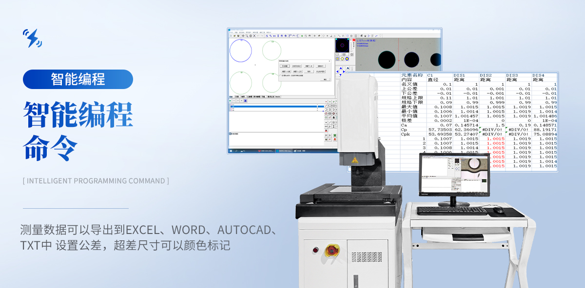 測(cè)量數(shù)據(jù)可以導(dǎo)出到EXCEL、Word、AutoCAD、TXT中。設(shè)置公差,超差尺寸可以顏色標(biāo)記,也可以輸出語(yǔ)音報(bào)警。
