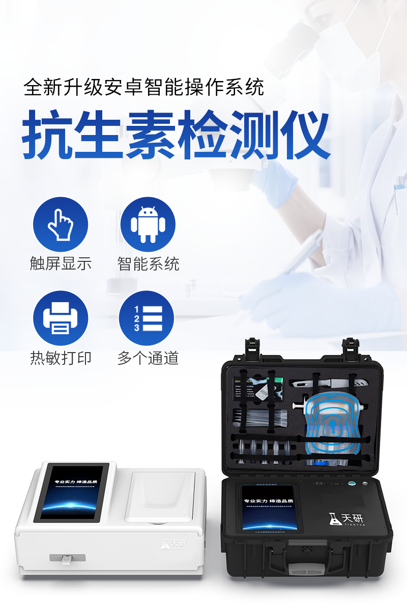 該抗生素檢測儀適用于豬、雞、鴨、羊、牛、牛奶等畜禽肉產(chǎn)品中獸藥殘留,包括抗生素類殘留、瘦肉精激素類殘留和水產(chǎn)品有毒有害物質(zhì)的現(xiàn)場快速篩查定及性定量檢測。 該多功能獸藥殘留檢測儀為集成化肉品安全快速檢測分析設(shè)備,可廣泛應(yīng)用于畜牧養(yǎng)殖場、屠宰場、食品肉產(chǎn)品深加工企業(yè)、食藥監(jiān)局、檢驗(yàn)檢疫部門、衛(wèi)生部門、高教院校、科研院所、農(nóng)業(yè)部門等單位使用。